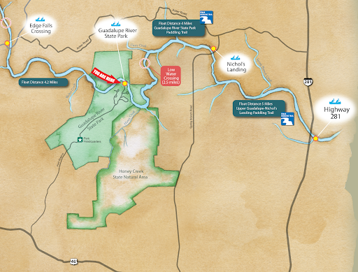 The quality of life and economic growth potential in the area of Water Street just south of G Street recently got a significant boost with the opening of the new . Guadalupe River State Park Map Saturdays between 11 a.m. and 2 p.m. at Rockin’ R in New Braunfels are still relatively busy. For the tubing and river outfitter business near the Guadalupe River, it remains difficult to tell how .